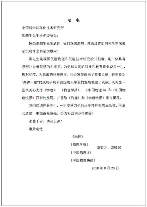 中國科學(xué)院物理研究所四刊唁電