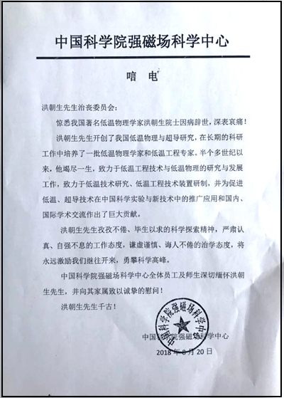 中國科學院強磁場科學中心唁電