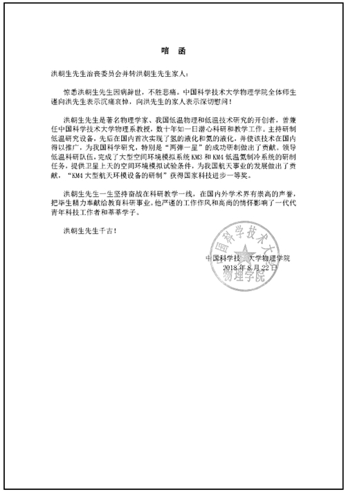 中國科學技術大學物理學院唁函