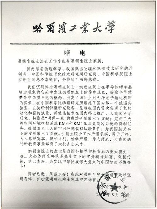 哈爾濱工業大學唁電