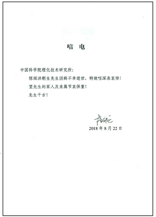 詹文龍院士發來唁電