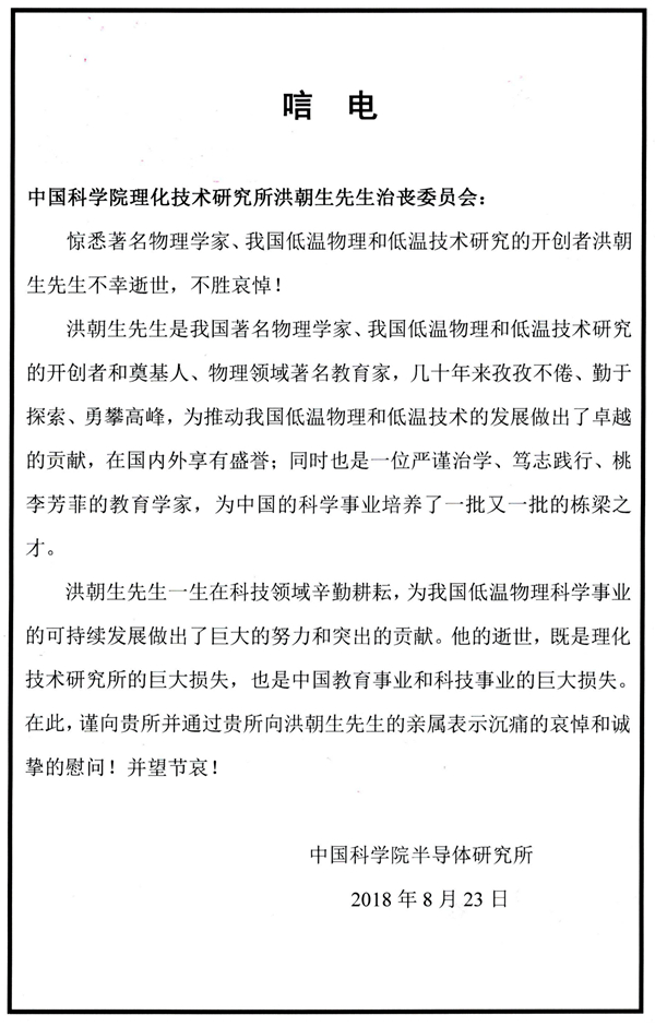 中國科學(xué)院半導(dǎo)體研究所唁電