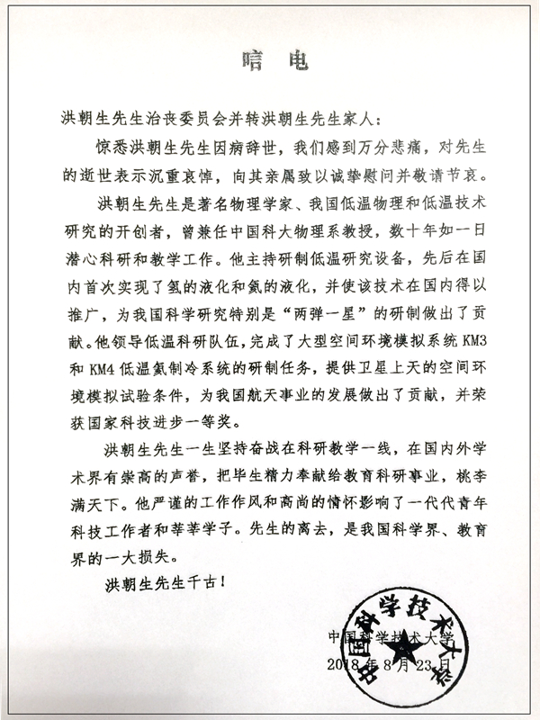 中國科學技術大學唁電