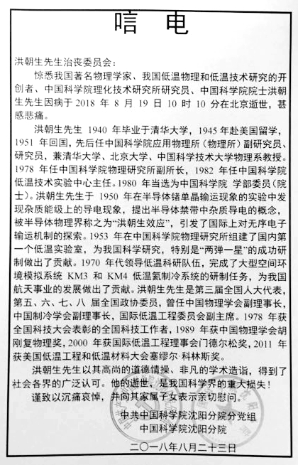 中國科學院沈陽分院唁電
