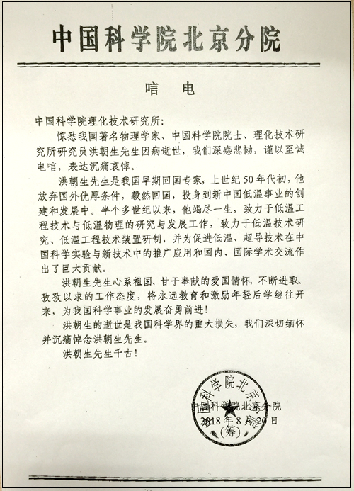 中國科學院北京分院唁電
