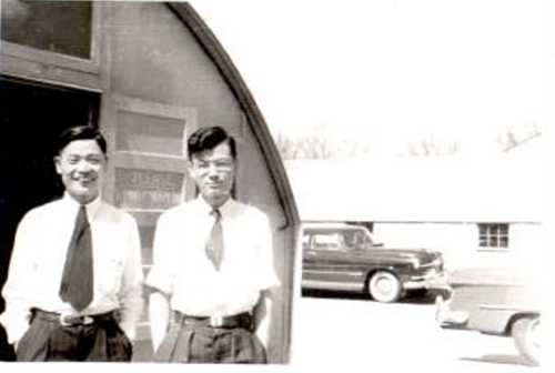 1950年,洪朝生(右)與鄧稼先在普渡大學低溫實驗...