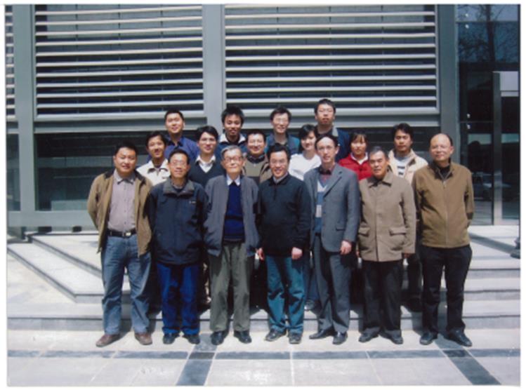 2005年,洪朝生(左三)與部分中青年科技人員在中...
